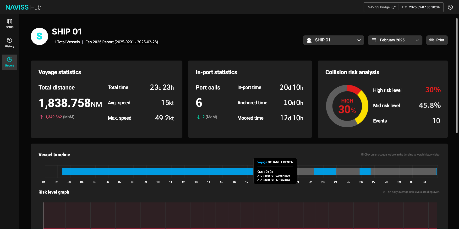 NAVISS Hub enables real-time remote monitoring and AI-driven fleet management. It integrates voyage data from multiple vessels to support smarter decision-making and operational safety from any location.
